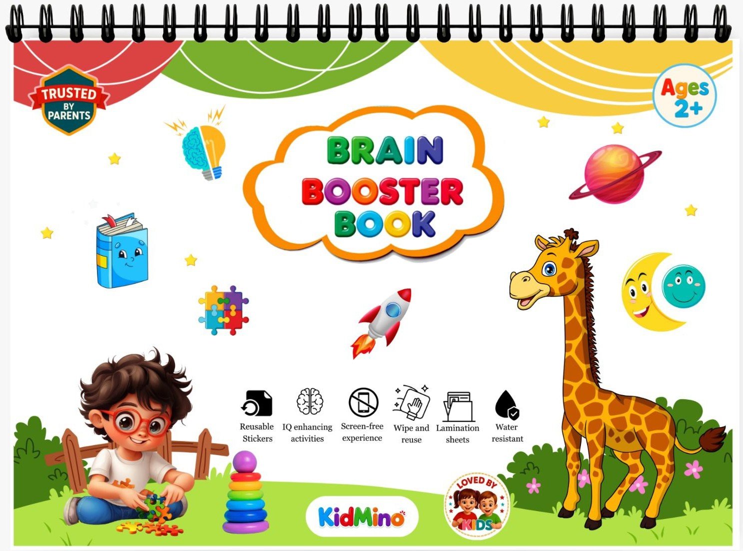 Give your child a screen-free learning adventure with the KidMino Brain Booster Book — a beautifully illustrated, spiral-bound activity book designed to sharpen young minds through play-based learning. Crafted for ages 2+ years and above, this book helps kids build creativity, focus, and problem-solving skills while having loads of fun!